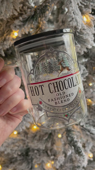 The North Pole Approved Hot Chocolate Glass Mug is perfect for sipping on your favorite holiday beverage.