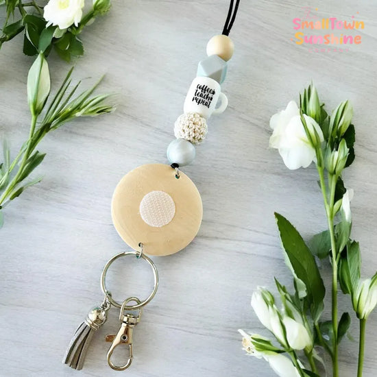 🛍️Purchase embroidered toppers from our shop to swap out and personalize your lanyard for the seasons, holidays, your profession, hobbies, encouragement, sass, your coffee addiction, anything you like! Our embroidered toppers added to the wooden disk creates an amazing focal piece that all your coworkers will admire, GUARANTEED!