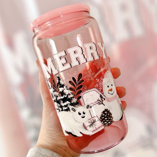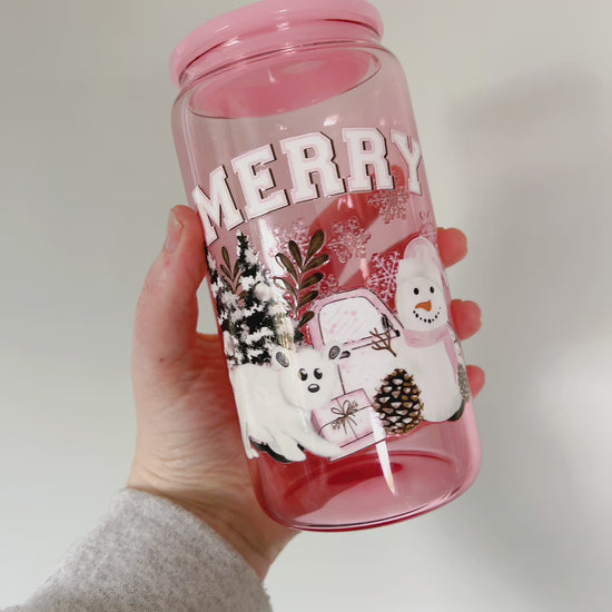 Introducing our Merry Winter Glass Can! This darling Jelly Pink glass is perfect for sipping on your favorite beverage during the holiday season.